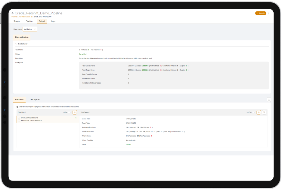 Validates code and schema along with data type and entity matching